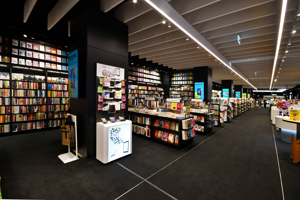 A área de livros assume maior protagonismo, com um mural que evoca o ambiente de uma livraria tradicional e uma aposta reforçada na secção de LEGO. No setor tecnológico, destacam-se os espaços de marca dedicados a OPPO, Samsung, Apple e Xiaomi em smartphones, e a Lenovo, Intel e HP em computadores. A oferta completa-se com uma ampla seleção de papelaria, jogos, brinquedos e música.