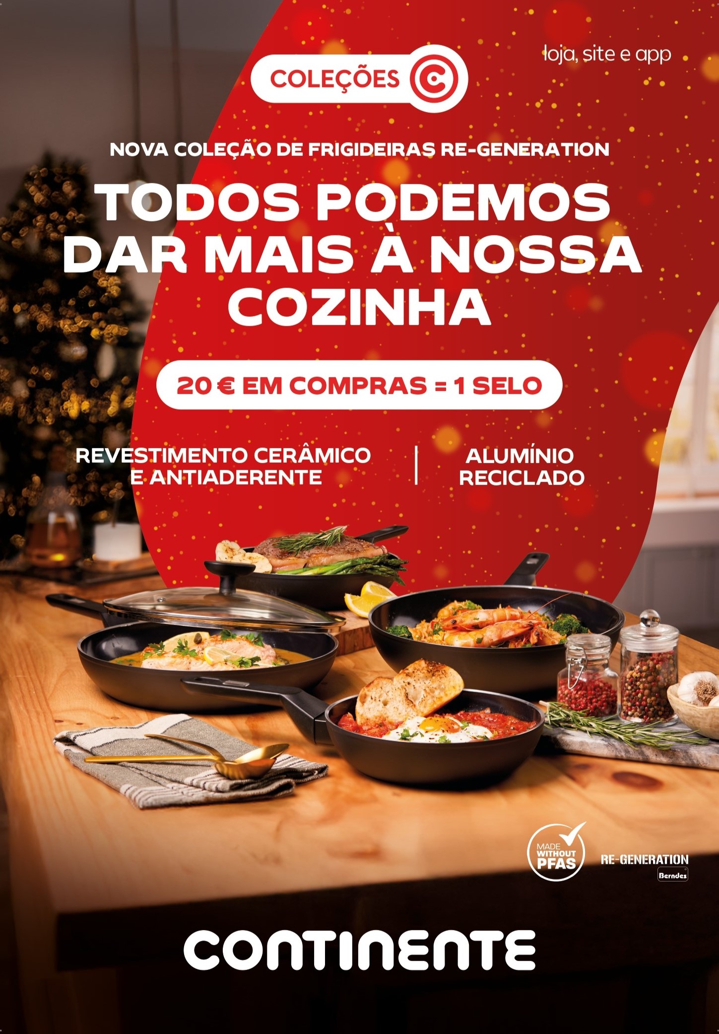 O Continente apresenta a sua nova campanha de fidelização, uma coleção exclusiva da marca Berndes, integrada na campanha de Natal com o mote “Todos recebemos mais, quando damos mais”. Disponível em todas as lojas com o objetivo de valorizar a qualidade e a sustentabilidade, esta coleção inclui frigideiras amigas do ambiente que os clientes podem adquirir ao acumular selos, simbolizando o compromisso do Continente em dar mais a todos. Nesta época natalícia, o Continente alia-se à marca Berndes, uma marca reconhecida pela sua qualidade e compromisso ambiental, disponibilizando frigideiras pensadas nos que procuram durabilidade e sustentbilidade para o seu dia-a-dia. A nova coleção, com o mote “Todos Podemos dar mais à nossa Cozinha”, disponibiliza frigideiras Berndes Re-Generation, feitas em alumínio reciclado, que requerem até 95% menos energia na sua produção, tornando-as numa escolha ambientalmente consciente.