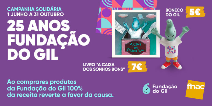 A FNAC e a Fundação do Gil uniram forças para celebrar um marco muito especial: os 25 anos da Fundação do Gil. De 1 de junho a 31 de outubro, será possível contribuir diretamente para a missão desta instituição ao adquirir dois produtos solidários, o livro A Caixa dos Sonhos Bons e o boneco do Gil. Estes produtos estarão disponíveis em lojas FNAC selecionadas e online. O valor angariado reverte na totalidade para a Fundação do Gil, permitindo dar continuidade ao trabalho desenvolvido em prol das crianças em risco clínico e/ou social.