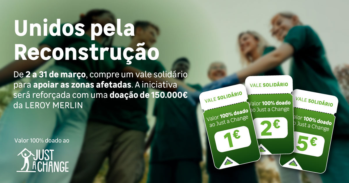 Após as recentes tempestades que atingiram severamente o país, a LEROY MERLIN acaba de lançar a campanha “Unidos Pela Reconstrução”, em parceria com a associação Just a Change. Esta iniciativa marca a segunda fase de apoio da empresa às populações afetadas, focando-se agora na reconstrução especializada de instituições locais e de corporações de bombeiros voluntários.