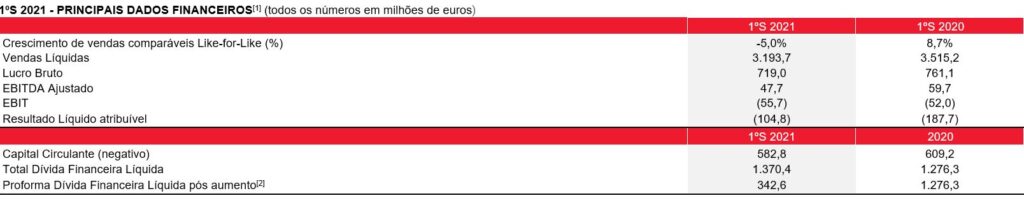 Explica a retalhista que “graças ao êxito do aumento de capital e ao refinanciamento da dívida completados nos meses de agosto e setembro, respetivamente, o endividamento líquido foi reduzido em 1.028 milhões de euros, estabelecendo uma estrutura de capital sustentável a longo prazo”, algo que acresce às “melhorias operativas e de contenção de gastos situam a margem EBITDA Ajustado em 1,5% e reduzem em 44% as perdas do semestre”.