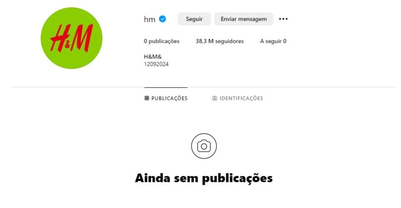 No perfil da H&M, que aparece sem qualquer post, está apenas na bio a indicação 12092024, em alusão à data de lançamento da nova campanha global de roupa da marca.