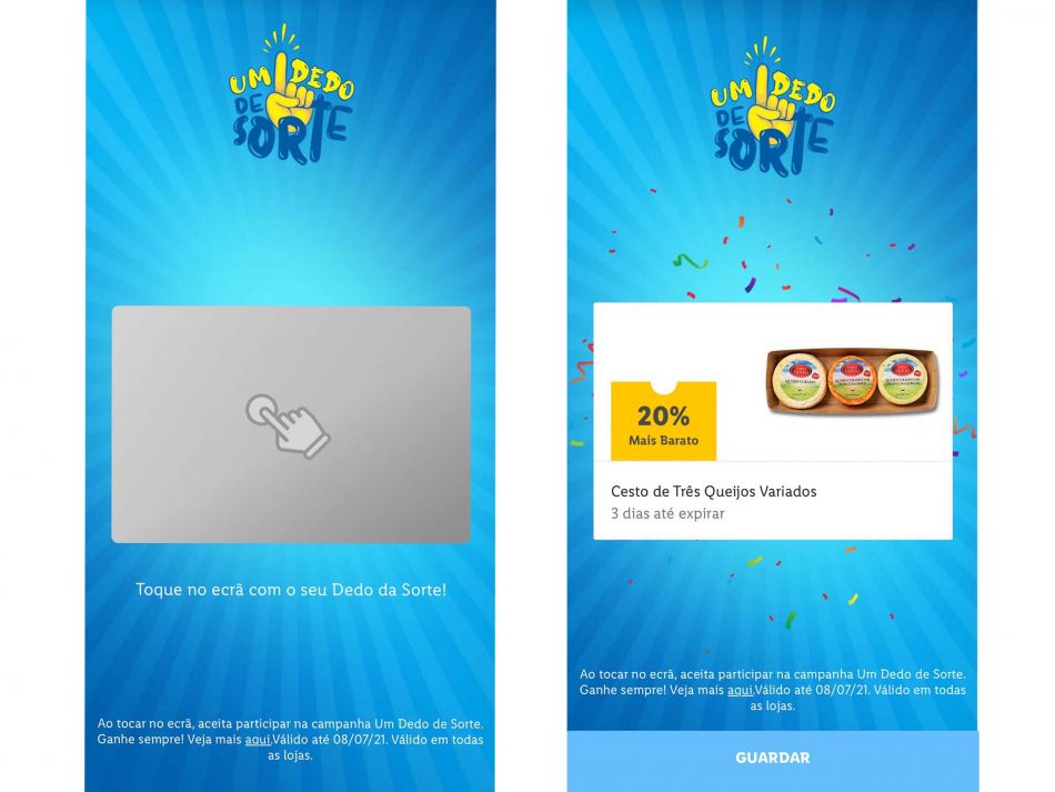 “Com uma mecânica bastante simples, esta funcionalidade ficará ativa na página principal da app Lidl Plus sempre que o cliente realizar uma compra – com um intervalo mínimo de 1 hora – que lhe dá acesso ao jogo ‘Dedo de Sorte’, recebendo sempre um cupão adicional. O mesmo ficará disponível na secção ‘Cupões’ da app e cada cupão de prémio terá a duração de 1 a 7 dias, sendo possível ativá-lo e utilizá-lo na próxima compra”, esclarece a marca em comunicado.