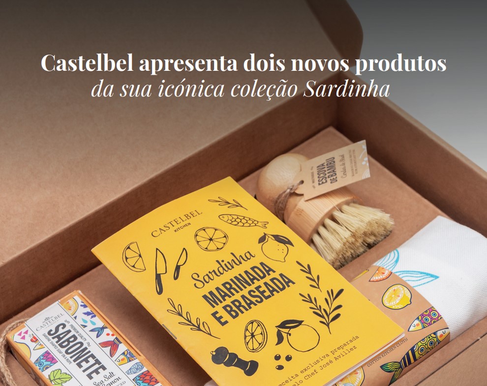 Castelbel lança dupla de coffrets Sardinha de edição limitada O coffret Escova de Bambu & Sabão para Louça foi pensado na elegância e qualidade de desempenho. Característico da marca, o design torna-o um apontamento de decoração único, destacando-se assim dos tradicionais utensílios de cozinha. Pensado para todos os que querem brilhar na cozinha, o Coffret Essenciais Cozinha é composto por quatro produtos imprescindíveis – o Sabão para Louça e Sabonete Sardinha Limão e Sal Marinho, a Escova de Bambu, o Pano 100% algodão – elegantemente acondicionados numa caixa reciclável