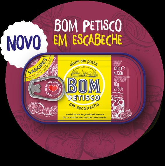 Bom Petisco lança Posta de Atum em molho de Escabeche Em 2024, a marca Bom Petisco continua a apostar na inovação e acrescenta um novo elemento à sua gama de sabores – posta de atum Bom Petisco em molho de escabeche. Com uma receita elaborada e diferenciadora, a marca Bom Petisco posiciona-se como uma verdadeira especialista na arte das conservas, procurando agradar ao paladar, cada vez mais exigente, dos seus consumidores. Após vários meses de pesquisa, em busca dos melhores ingredientes e do melhor sabor, surge o molho de Escabeche, uma das mais antigas e tradicionais técnicas culinárias. Para a sua elaboração são utilizados um conjunto de ingredientes selecionados, sem aditivos ou conservantes, que juntos formam este delicioso molho, preparado na fábrica da marca, situada em Rabo de Peixe, nos Açores.