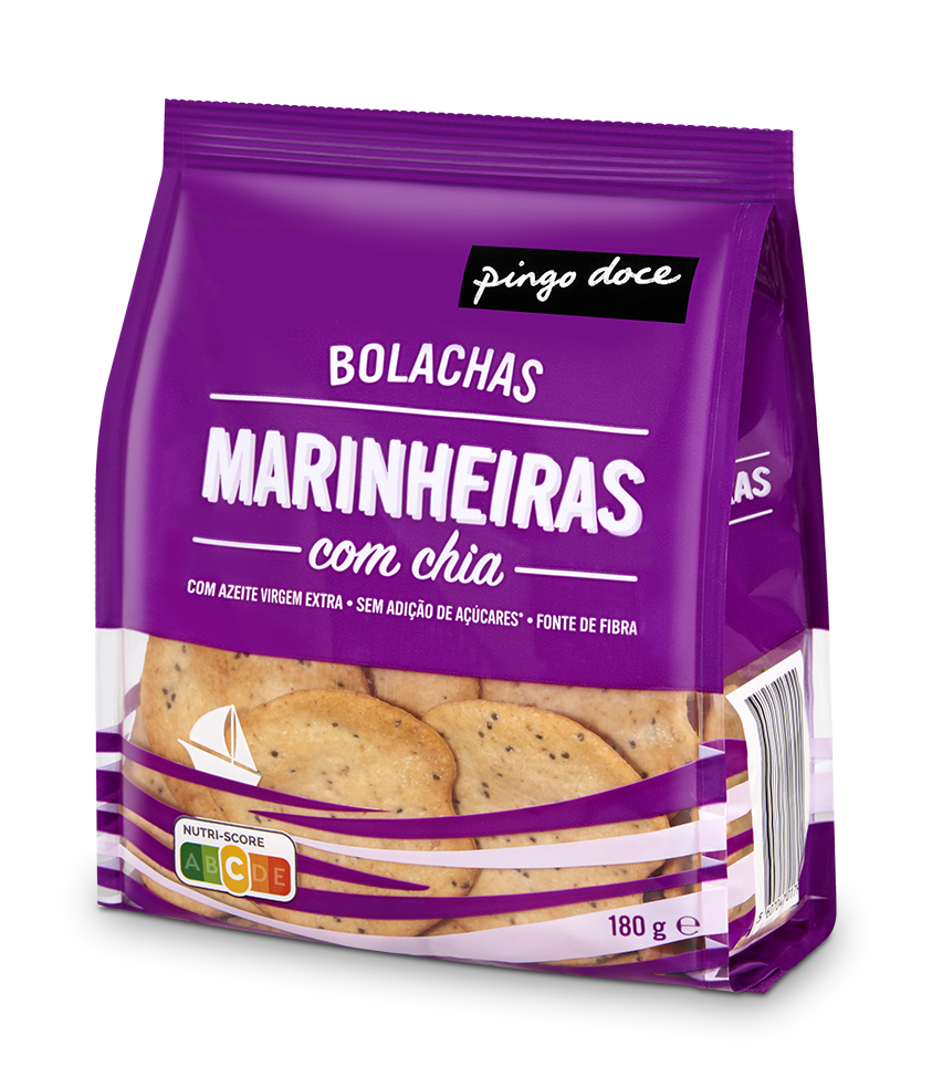Já chegaram às lojas as novas bolachas Marinheiras Pingo Doce, disponíveis em duas versões: Clássicas e com Chia. Autênticas, crocantes e irresistíveis. Inspiradas na receita tradicional dos biscoitos que os marinheiros levavam nas longas viagens, as novas bolachas Marinheiras Pingo Doce são feitas com azeite virgem extra, sem adição de açúcar e são fonte de fibra.