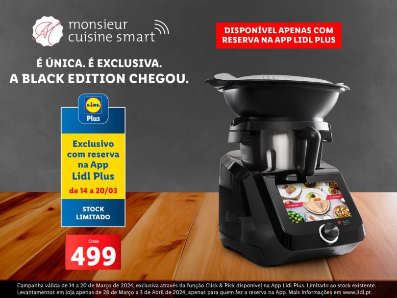 O robot de cozinha mais requisitado do Lidl, o Monsieur Cuisine, está de parabéns. Para celebrar o seu 10º aniversário, o Lidl Portugal lança agora uma versão exclusiva e de edição limitada do robot em preto. Mais moderno e sofisticado, o novo Monsieur Cuisine Smart estará apenas disponível durante uma semana, através de reserva na aplicação Lidl Plus, com levantamento na loja.
