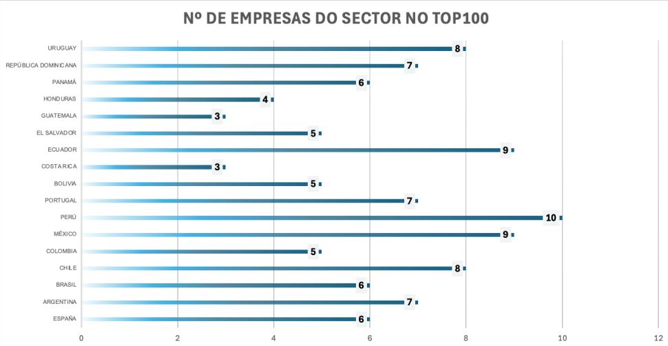 A comunicação também dá conta de que o Peru, México, Chile, Equador e Uruguai são os países que apresentam mais empresas do Top-100.