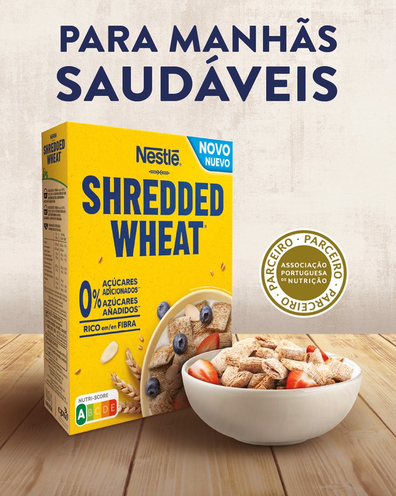 Chegaram os novos cereais SHREDDED WHEAT da Nestlé Os novos cereais SHREDDED WHEAT® da Nestlé são ricos em fibra, com 0% açúcares adicionados e 100% trigo integral, são ideais para os consumidores mais exigentes que procuram a simplicidade e naturalidade na sua alimentação, com um estilo de vida saudável e ativo