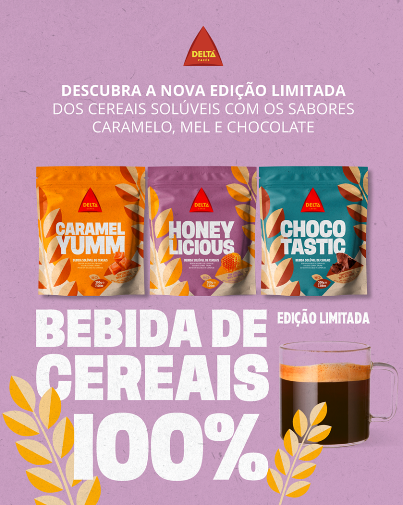 Delta Cafés lança edição limitada Cereais com Sabor A Delta Cafés acabar de lançar uma nova gama limitada de Cereais com Sabor. Choco Tastic, Caramel Yumm e Honey Licious são as mais recentes misturas com cereais 100% naturais, sem cafeína, que resultam em bebidas indulgentes e naturalmente saborosas, proporcionando momentos de puro prazer em qualquer momento do dia.
