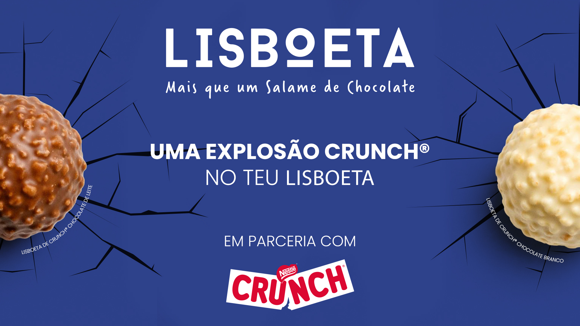 Nestlé leva o inconfundível chocolate CRUNCH ao salame “O Lisboeta” A Nestlé juntou-se ao “O Lisboeta” para o lançamento de uma combinação única e deliciosa, entre o clássico salame e o inconfundível chocolate CRUNCH. Disponível em duas variedades – chocolate de leite e chocolate branco – esta combinação promete conquistar quem procura experiências verdadeiramente irresistíveis, unindo a crocância icónica de CRUNCH à intensidade autêntica de “O Lisboeta”.
