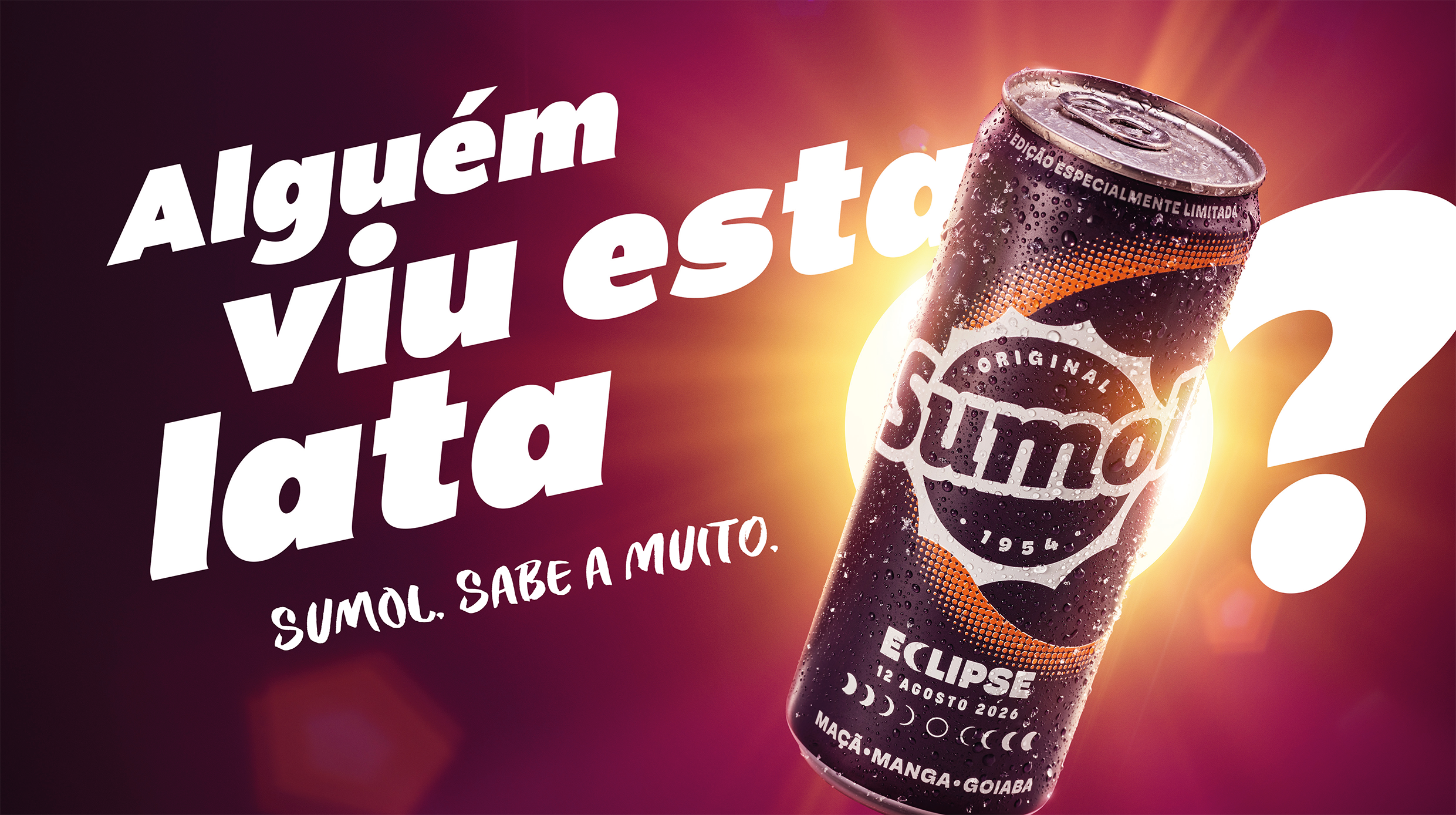Sumol lança edição limitada para celebrar eclipse solar total deste verão Preparem-se para o que vai acontecer no verão de 2026. Da Terra, veremos a lua a esconder o sol, num momento raro e único que não é observado em Portugal há 114 anos: um eclipse solar total. O eclipse solar total acontecerá no dia 12 de agosto, com início às 18h30. Num momento verdadeiramente raro, o eclipse solar total terá níveis de ocultação em Portugal superiores a 90%, sendo visível a 100% nalgumas zonas. Para acompanhar este fenómeno, que só voltará a acontecer no século XXII, Sumol lança hoje no mercado uma edição especialmente limitada: Sumol ECLIPSE. Tal como o sol, esta edição limitada, que pretende acompanhar famílias e amigos durante o eclipse, vai eclipsar no final de Agosto.