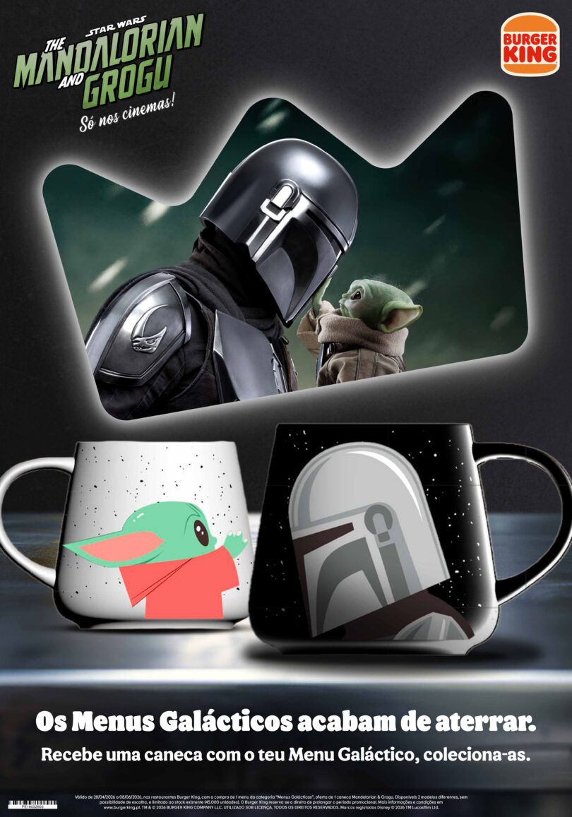 This is Your Way: Burger King® lança menus de edição limitada inspirados em Star Wars Nesta primavera, o Burger King® traz a Força até ao grelhador. A partir de 28 de abril chega aos restaurantes uma edição limitada inspirada no filme Star Wars: The Mandalorian and Grogu – mesmo a tempo da estreia do filme, a 21 de maio. Numa homenagem à narrativa épica deste universo, os habituais menus combinam sabores marcantes com uma experiência envolvente, através de packaging imersivo e colecionáveis exclusivos. Todos os menus incluem o novo molho galáctico – um toque temático que transforma os clássicos numa experiência única e limitada.