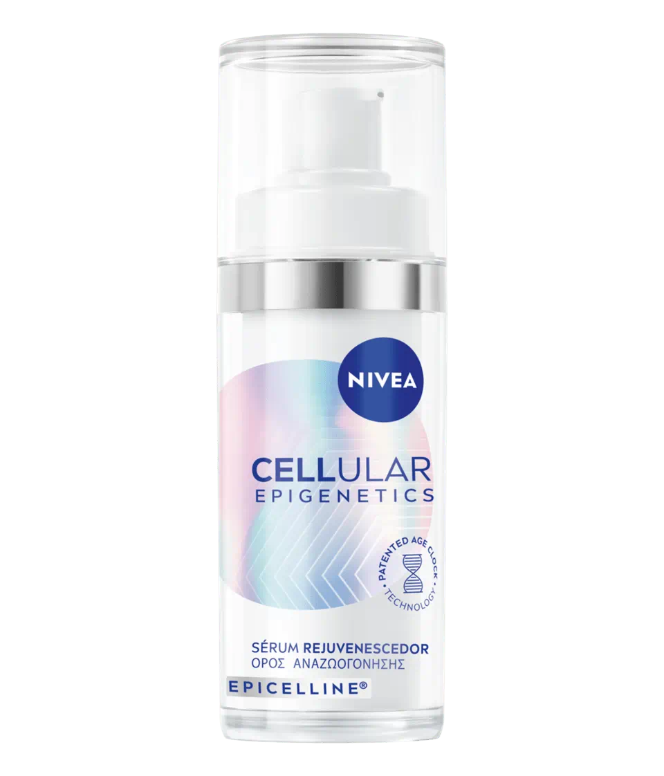 NIVEA apresenta o Cellular Epigenetics Sérum Rejuvenescedor NIVEA apresenta inovação capaz de reverter o “relógio da idade” da pele: Cellular Epigenetics Sérum Rejuvenescedor, com EPICELLINE®, um ingrediente pioneiro e inovador, impulsionado pela ciência epigenética. Ao tirar partido de EPICELLINE®, o sérum NIVEA não só abranda o processo de envelhecimento da pele, como também o reverte a nível celular, permitindo que assuma o controlo do impacto do tempo na sua pele.