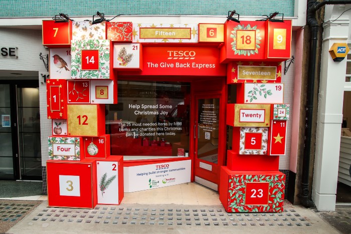 Numa iniciativa Pop-up, o The Give Back Express, como foi apelidado, é um supermercado reverso onde as doações são incentivadas. Os visitantes deste espaço, no Reino Unido, são convidados a comprar e doar os 25 itens mais necessários identificados pela Tesco e pelas instituições de caridade FareShare e Trussell Trust, incluindo alimentos enlatados, chá e produtos de higiene pessoal.